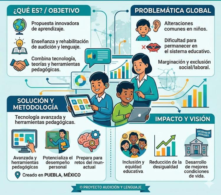 El Proyecto de Formación para la atención en la Audición y Lenguaje, es una propuesta de aprendizaje innovadora para la enseñanza y/o rehabilitación de las personas con problemas de audición y lenguaje, mediante el uso de la tecnología, la combinación de teorías y herramientas pedagógicas que potencializan el desempeño de las personas con este tipo de necesidades, preparándolos para enfrentar con éxito los retos del mundo actual. Este sistema es creado por profesores e investigadores de la ciudad de Puebla, México.