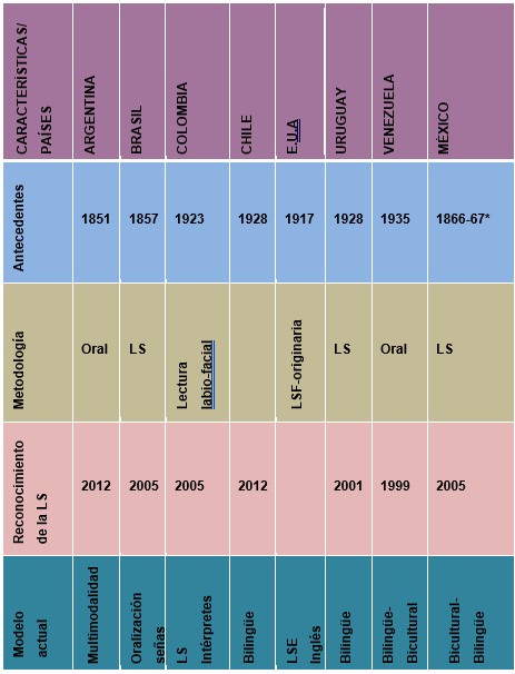 Cuando los sordos empezaron a recibir educación, originalmente fue a través de señas, en América se tiene la influencia francesa e italiana en la enseñanza de signos. Posteriormente un grupo no muy numeroso de personas oyentes impuso la superioridad de la lengua hablada con respecto a la lengua de señas, y decretó, que la primera debería constituirse como el único objeto de enseñanza. Dando origen a lo que se conoce como Oralismo (Congreso de Milán de 1880).